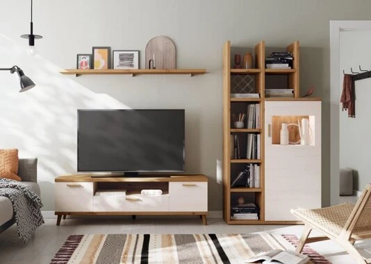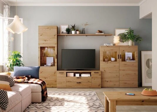 Composición de salón BOSTON 02. Largo 260 cm, fondo 42 /35 cm, Alto 198 cm.